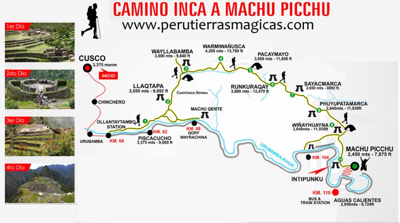 • bilhete de entrada Trilha Inca e Machu Picchu.