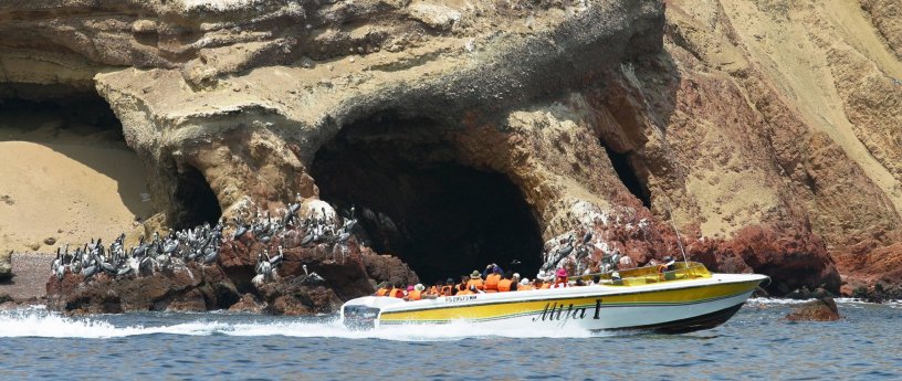 Em seguida, passe por as formações de rocha como bestas, paraíso habitado por muitas espécies marinhas tais como pelicanos, gavinhas, biguás, pinguins Humboldt e muitas outras aves.